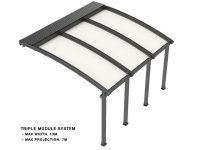 The Halo retractable roof system provides outdoor protection with an architectural edge. With its curved rafters, it provides more top space than the straight rafter Tera systems.The system offers a wind rating up to Beaufort class 11 (up to 117km/h) and is designed to stand up to even the worst of conditions rain, hail or shine.The system is manufactured to size using high grade 6063 extruded aluminium profiles finished with thermosetting powder coating which provides superior overall performance for exterior product applications. All bolts, screws and pins are high grade stainless steel to ensure extended system life.